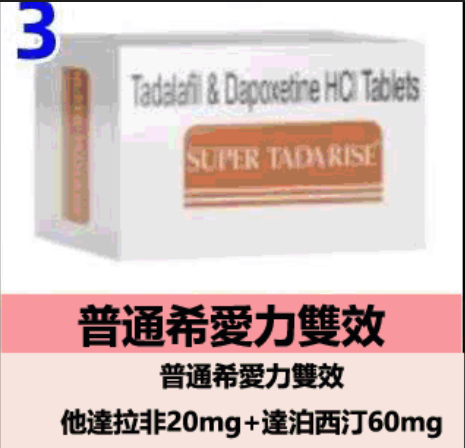 西地那非100mg(威而鋼)+達泊西汀100mg(必利勁) 威而剛&必利勁混合片,超級助勃加上超級延時, 服用後2-4小時之間效果最佳,12小時有效。 -